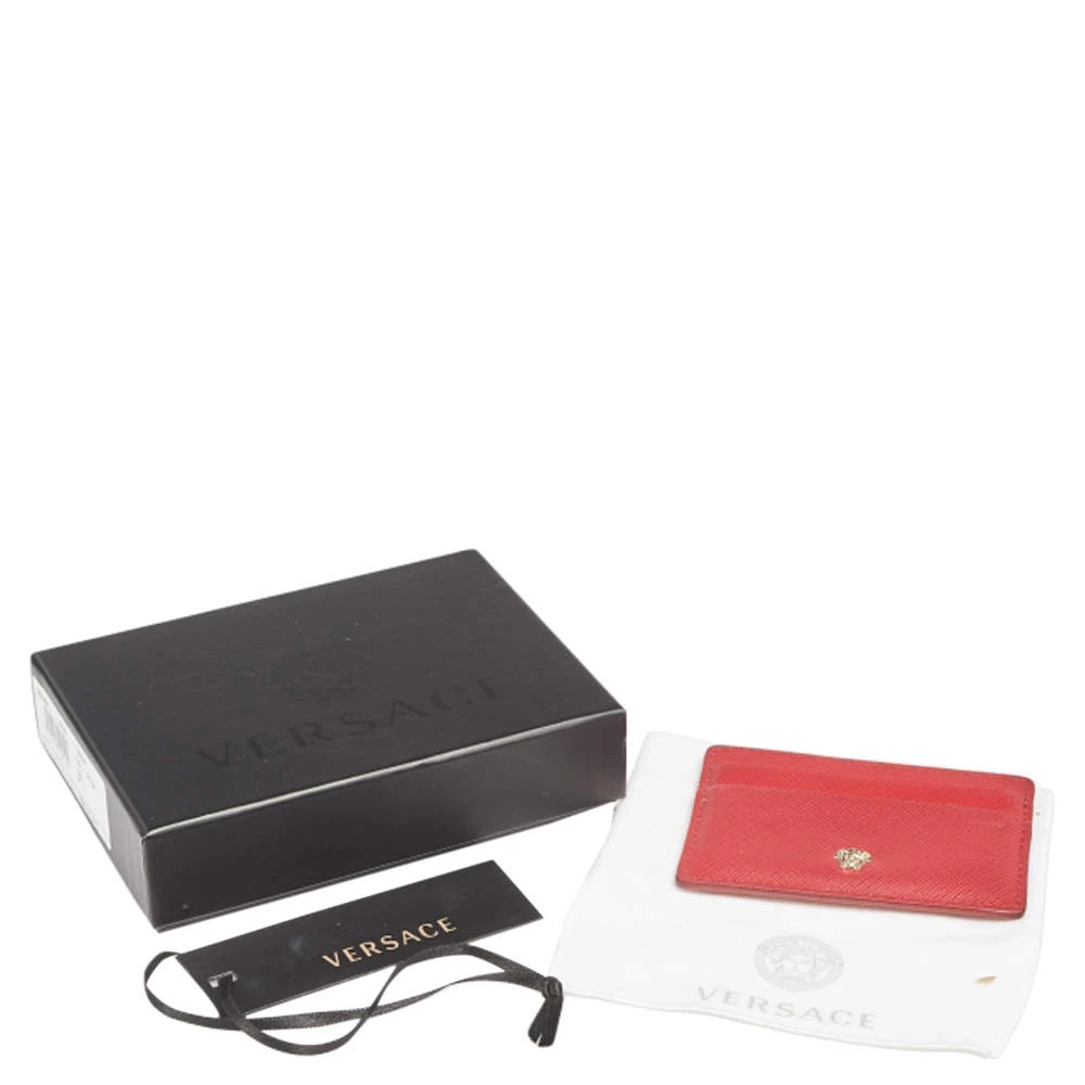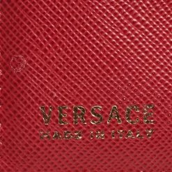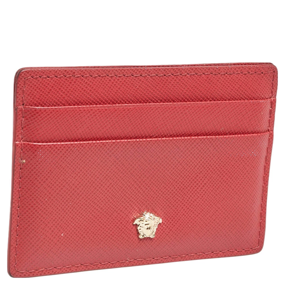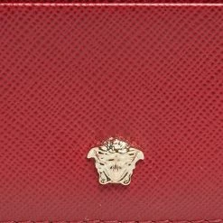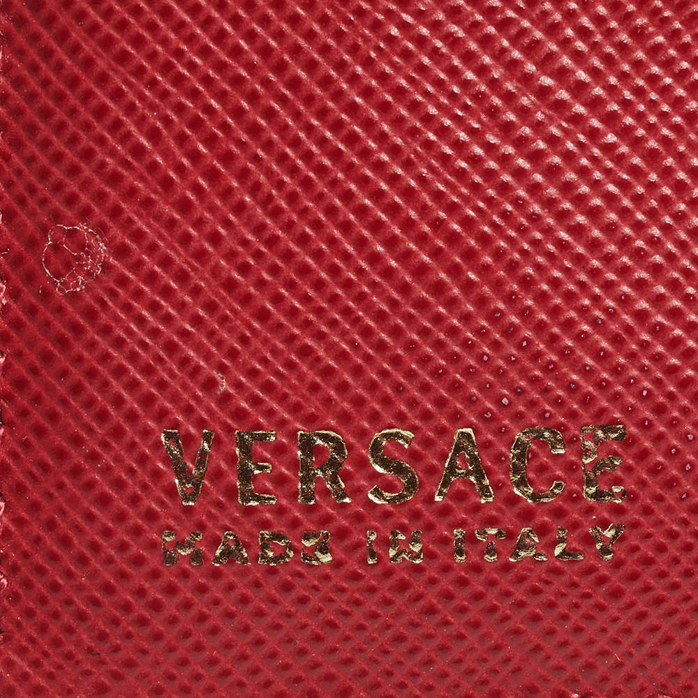 Crafted using red leather, this case from Versace features the signature Medusa logo at the front and comes with lined card slots. It can easily hold your cards in an organized manner. Slip it into your everyday tote or wallet.