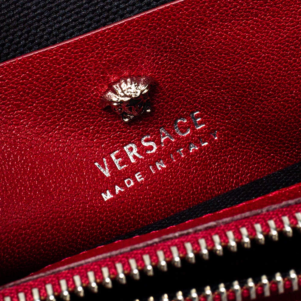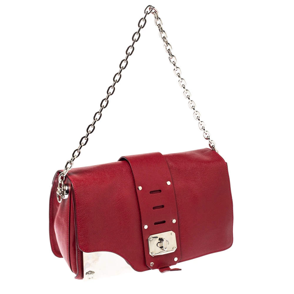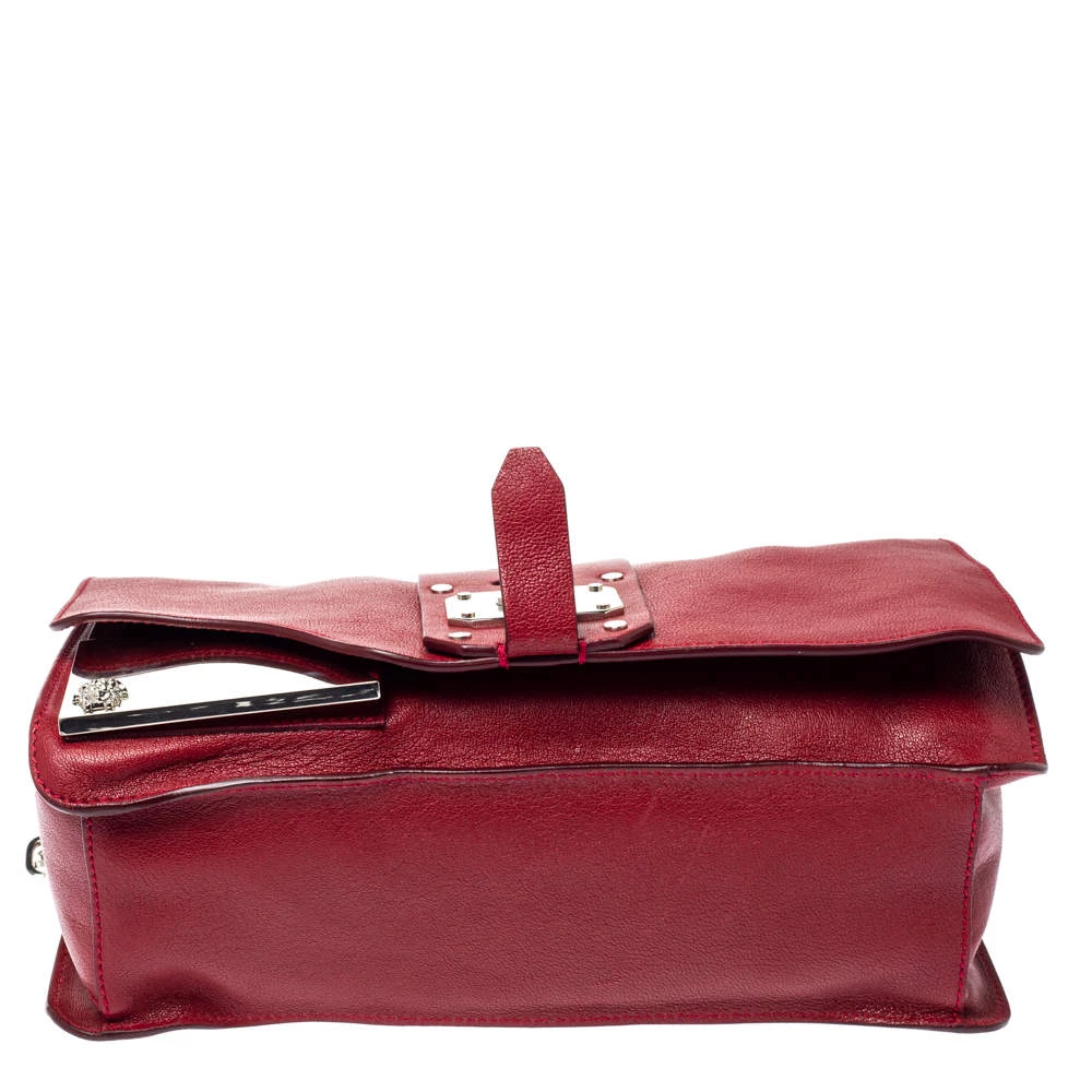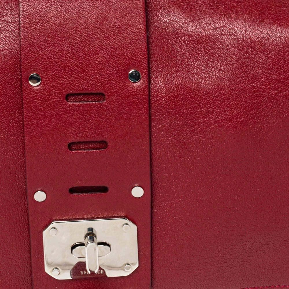 Coming from the house of Versace, this handbag is a dream come true for every fashionista. This alluring and beautifully fashioned leather handbag is surely a must-have. With an expertly lined fabric interior, this red-hued bag can accommodate all your essentials. It has a chain handle, turn-lock closure and silver-tone hardware.