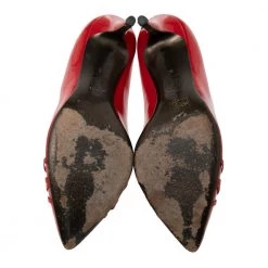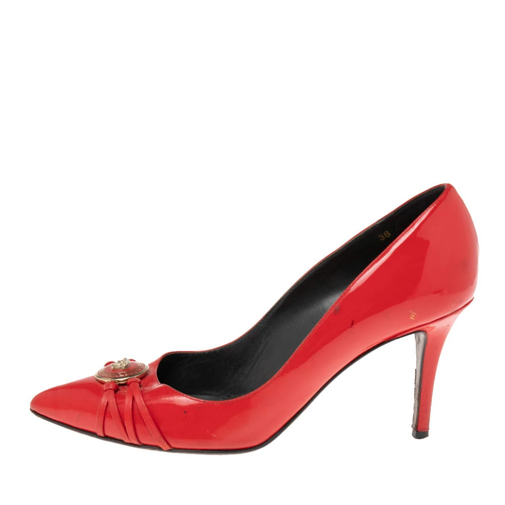 This pair of Versace pumps are a style statement with a timeless design. Crafted from patent leather, they feature pointed toes accented with the iconic Medusa motif in gold-tone metal, 9 cm heels and leather soles. They bring a touch of glamour to every outfit they are paired with.