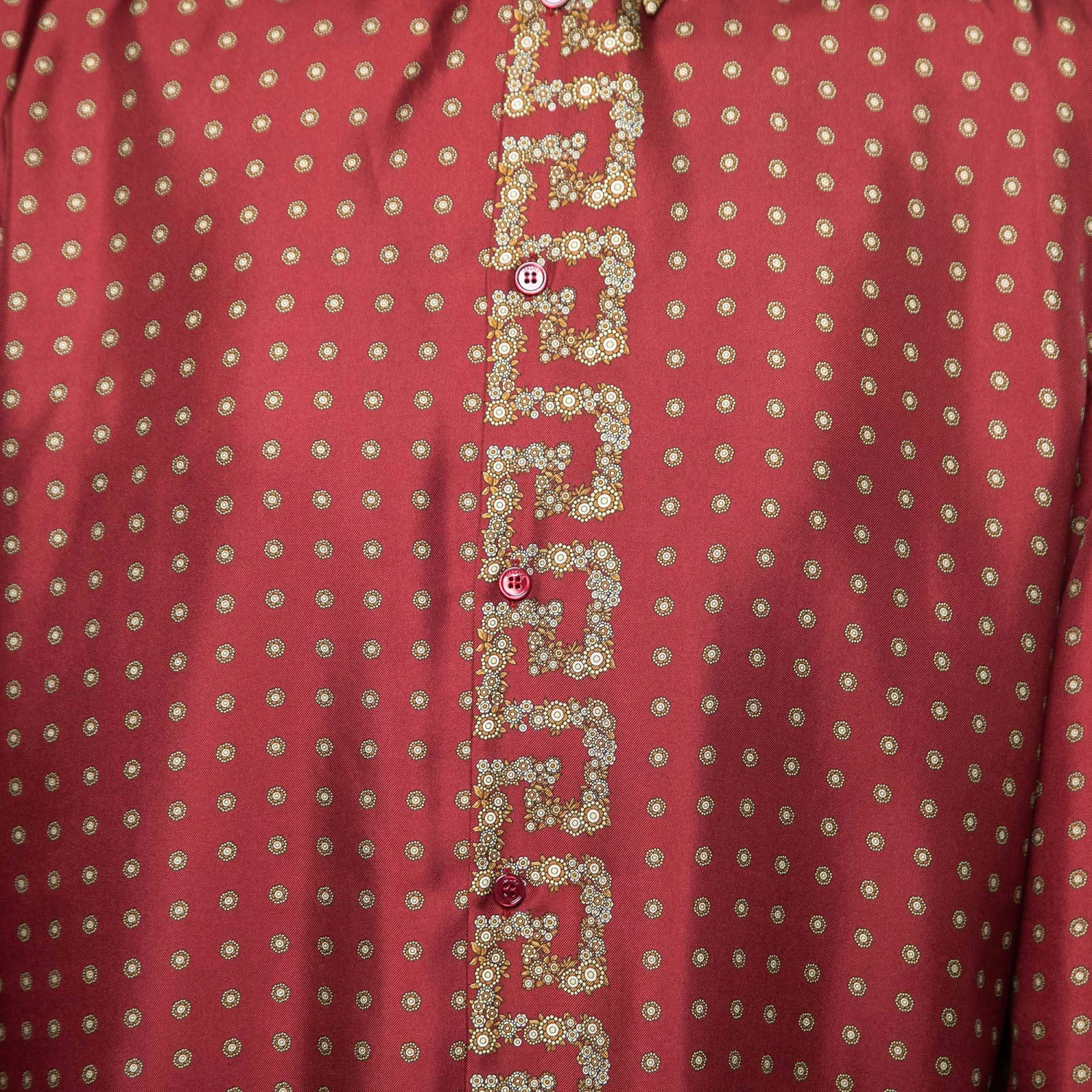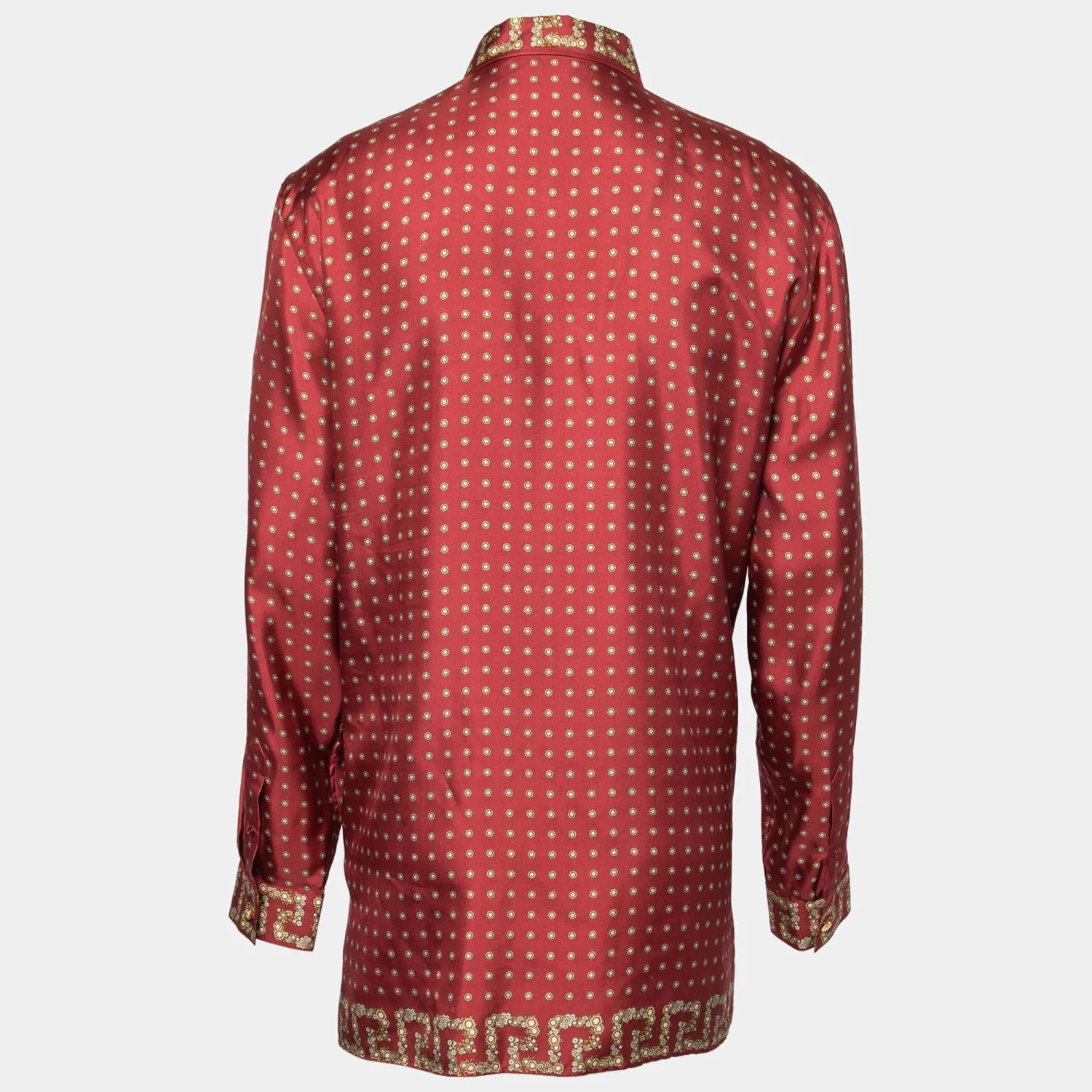 Versace Red Printed Silk Button Down Long Sleeve Shirt XL For Men
