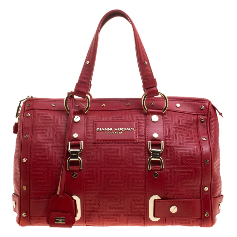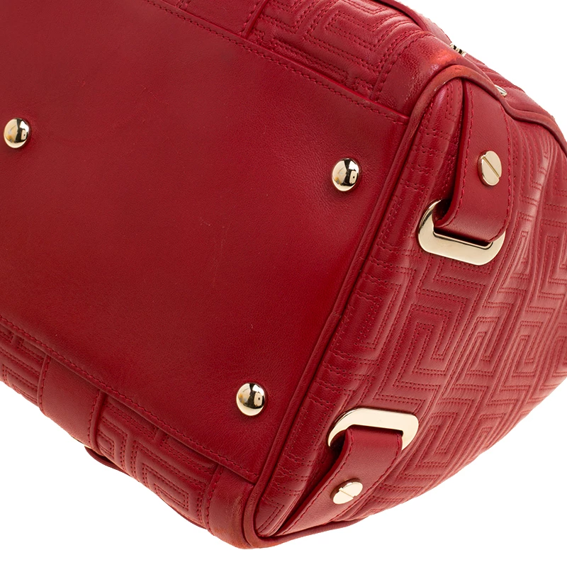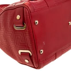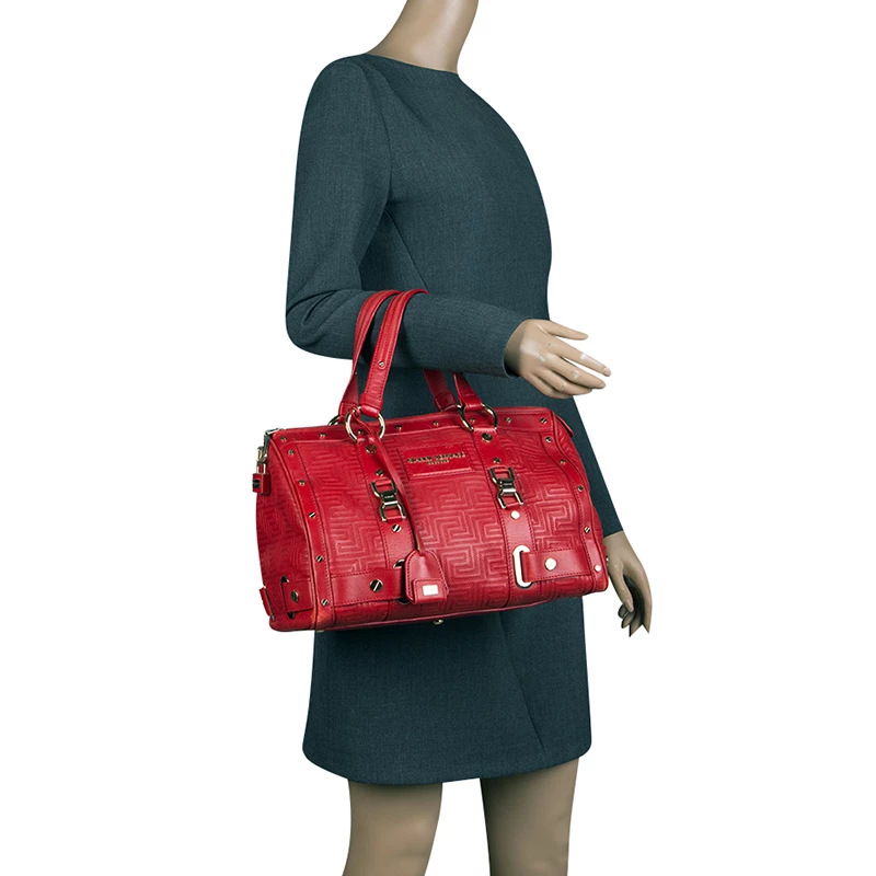 How gorgeous is this satchel from Versace! It carries an outstanding design and a fabulous interplay of red leather and gold-tone hardware. It has a top zipper leading to a satin interior while being held by two handles. The quilt detailing and the brand label on the front just uplift its beauty and makes it a buy you will not regret.