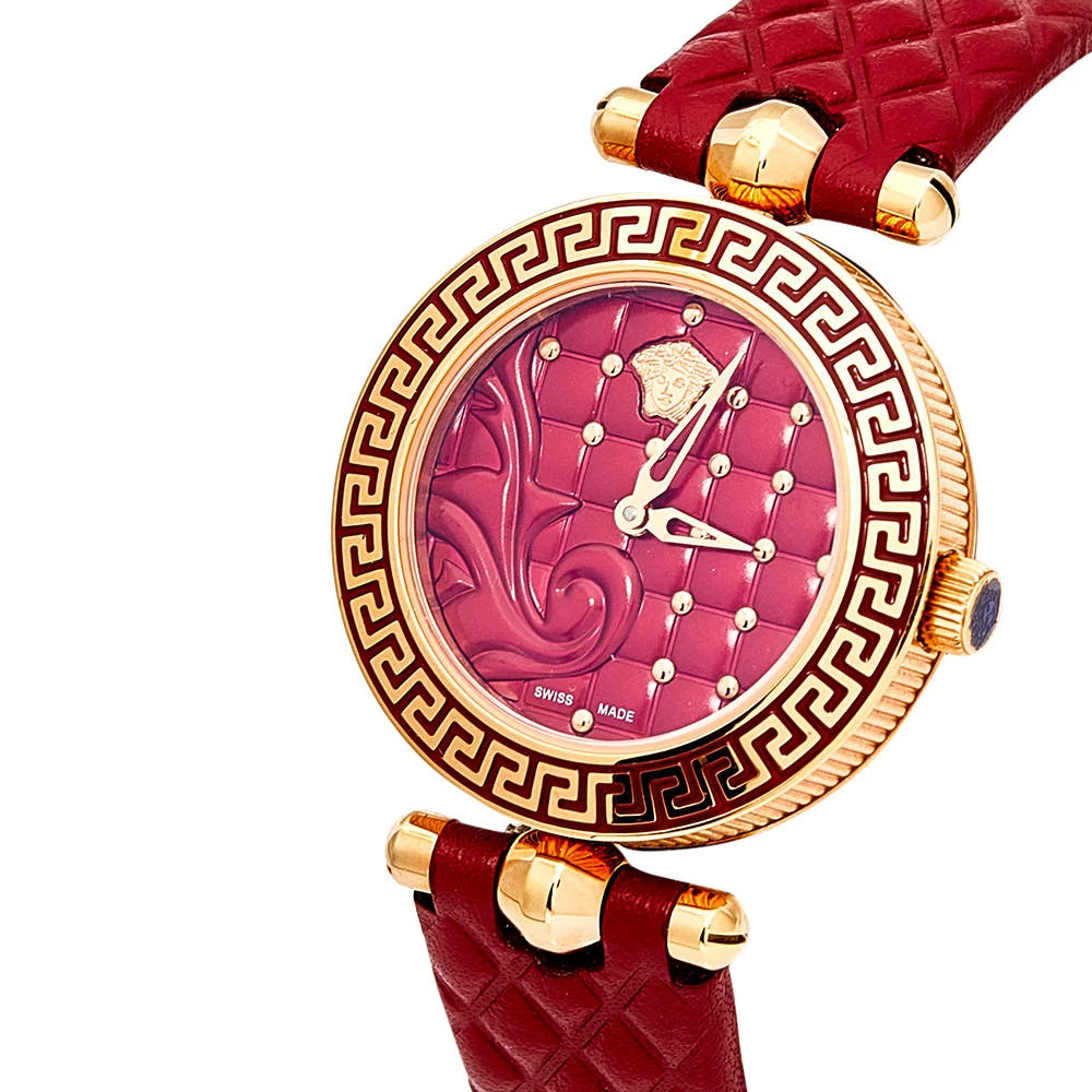 Versace Red Rose Gold Plated Stainless Steel Leather Vanitas VQM Women’s Wristwatch 30 Mm For Women