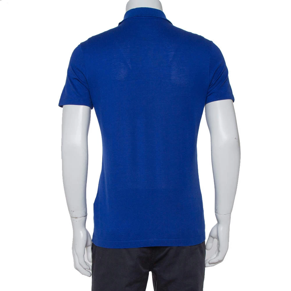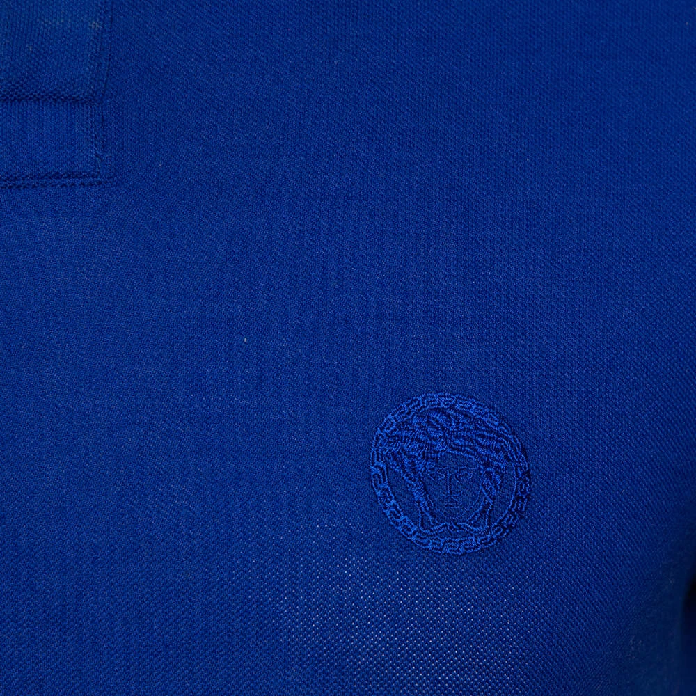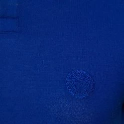 Smart T-shirts are forever in vogue and this one from Versace is utterly high on style! It is made of 100% cotton and features a royal blue shade. It is complete with the iconic Medusa logo detailing on the front, a button fastening, and short sleeves.