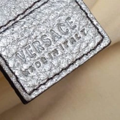 When utility meets high style, we get this Versace bag. Crafted from woven leather, this bag features a top handle, the Medusa logo charm on the embellished front flap, heavy fringes on the exterior, and a fabric interior to house the things you need.