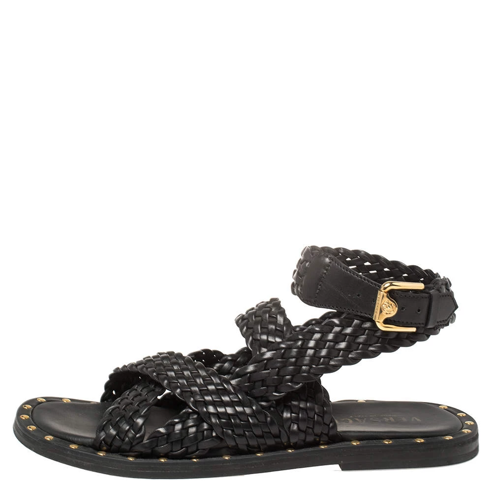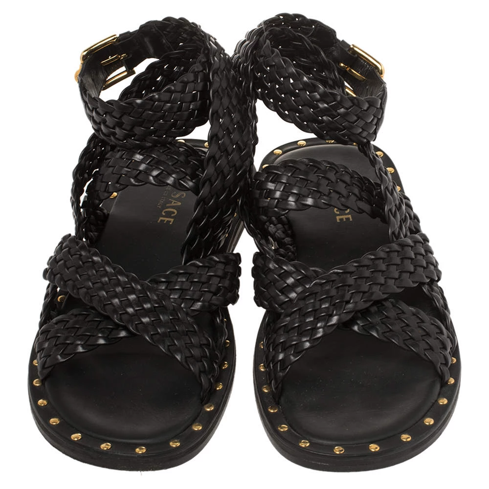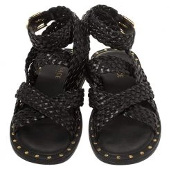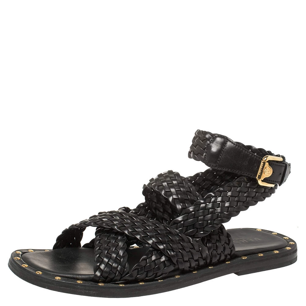 Versace’s sandals are minimal and comfortable. They are crafted from braided leather in a black shade and feature a strappy style secured by gold-tone buckles. Wear them with casual outfits for a stylish look.