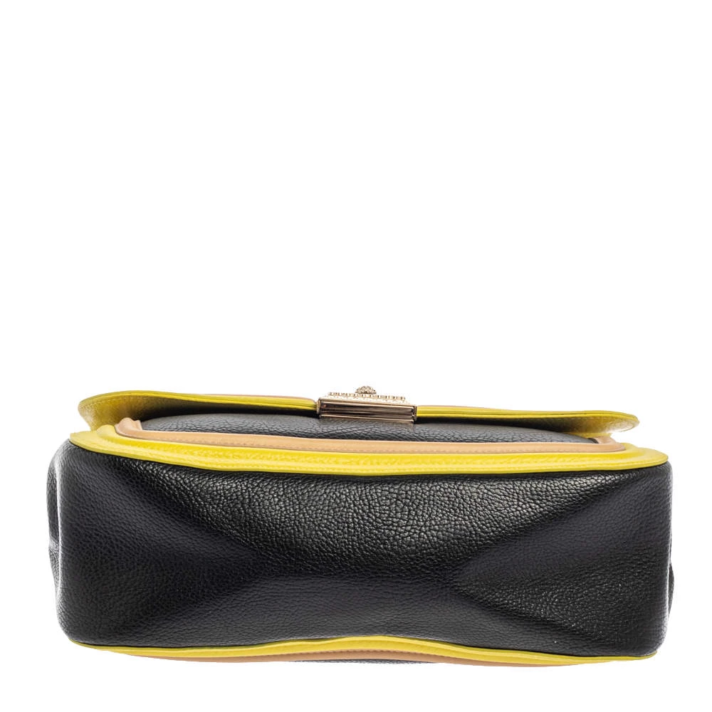 Embrace the bold style that Versace offers with this chic bag. An example of luxe fashion, this beautifully crafted bag comes with a spacious satin interior. Made in a tricolor leather body, this bag can effortlessly be fashioned with both off-duty and formal looks.