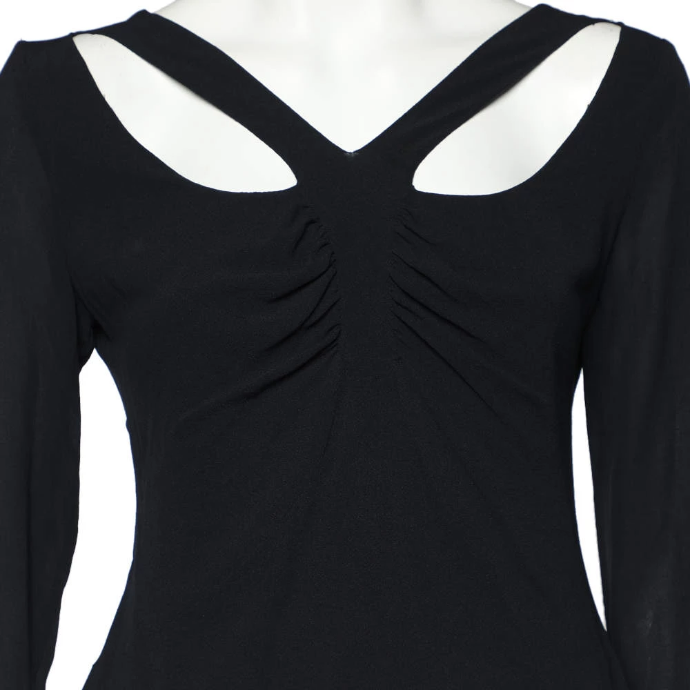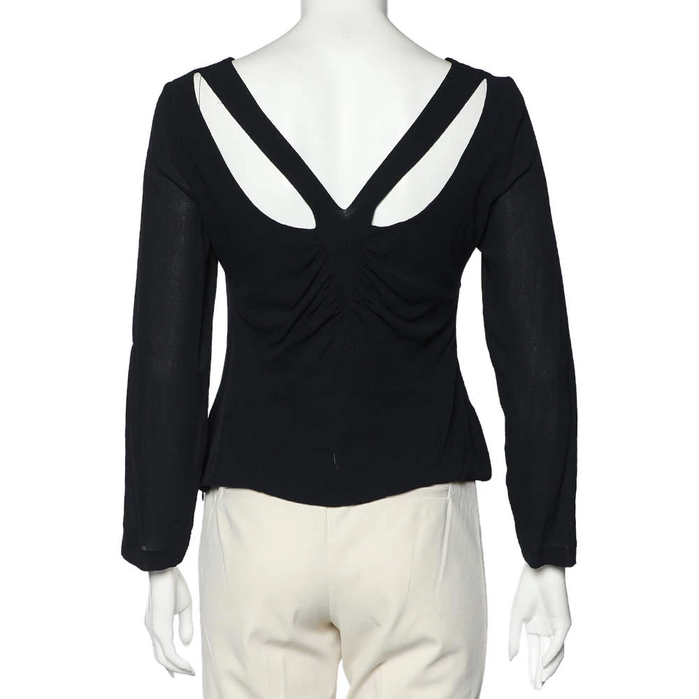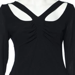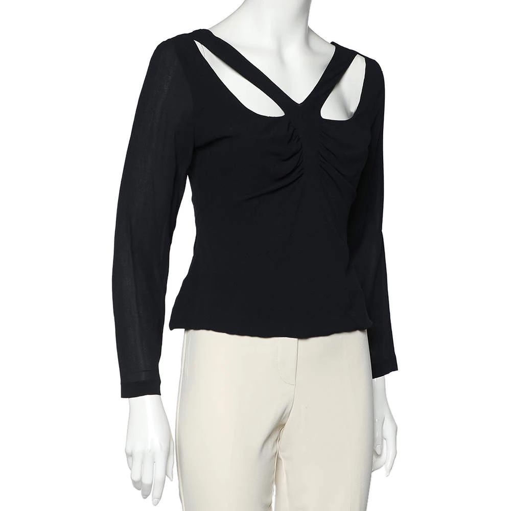 Look classy as you wear this top from the House of Versace. It is stitched using Vintage-black silk chiffon fabric and highlighted with cut-out details. It has long sleeves. This top is perfect for casual outings!