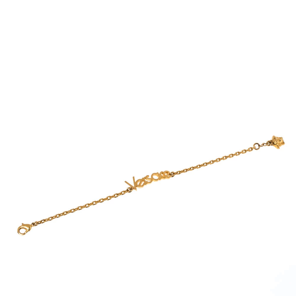 You’ll catch yourself admiring this Versace bracelet once it is on your wrist. It has been crafted from gold-tone metal and designed with the ‘Versace’ logo at the center. The piece is complete with a lobster clasp fastening and a Medusa charm.