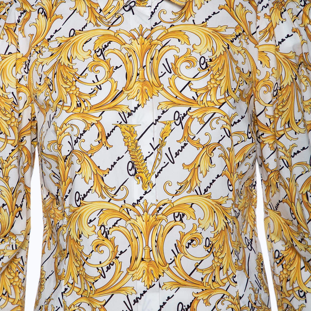 Signature prints for an unmistakable Versace charm and dramatic Victorian sleeves ensure that the wearer of this shirt effortlessly projects a fashionable look. It is tailored using cotton and added with a simple collar and front button closure.