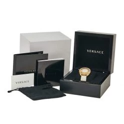 This beautiful timepiece from the house of Versace is sure to be a conversation starter with its eclectic and eye-catching design. Constructed using gold-plated stainless steel, this Destiny Spirit watch features a transparent panel on the case which is filled with little studs made to float as you move. (NOTE: Restrictions may apply for shipping outside UAE)