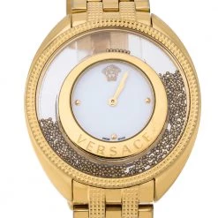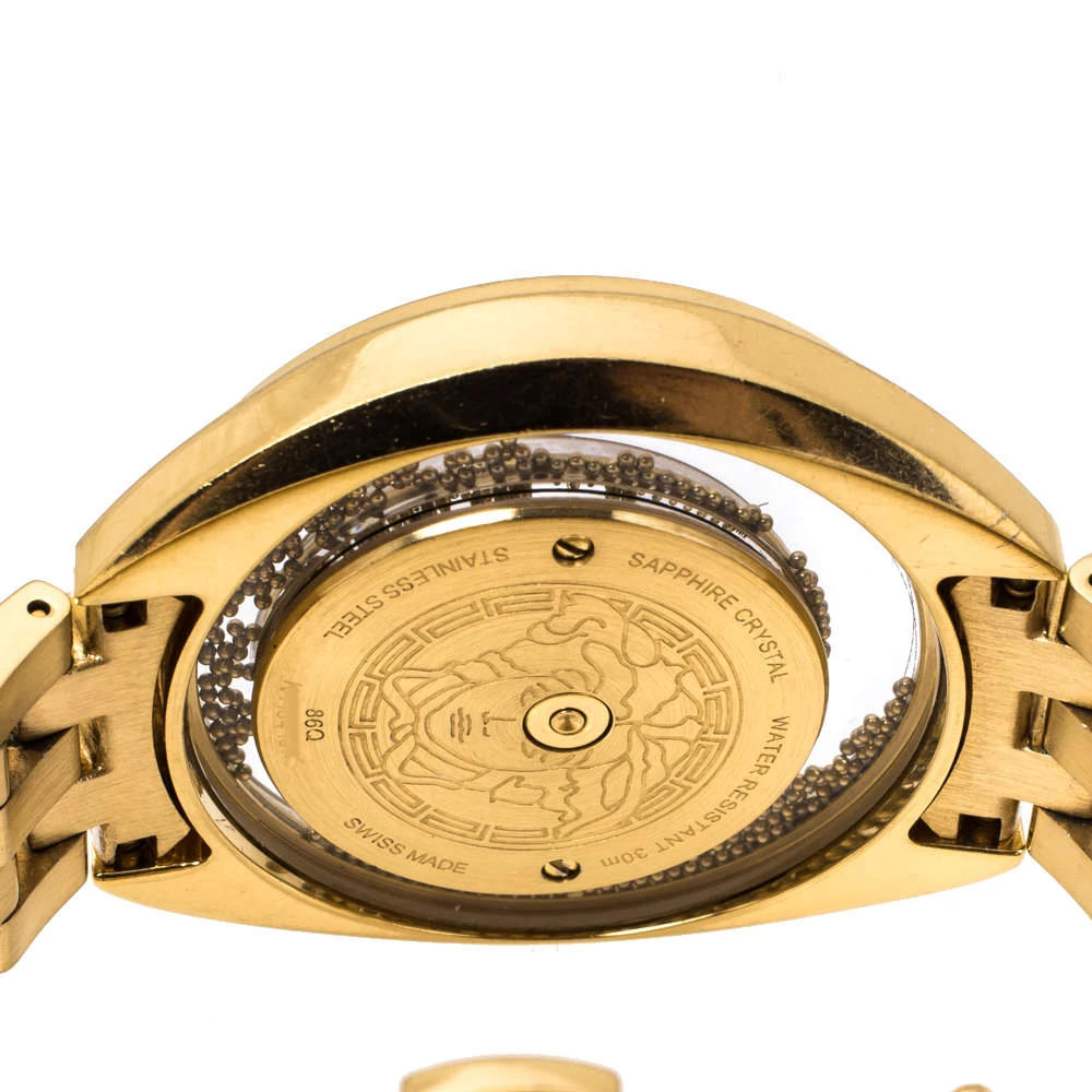 This beautiful timepiece from the house of Versace is sure to be a conversation starter with its eclectic and eye-catching design. Constructed in gold-plated stainless steel, this Destiny Spirit 86Q watch features a transparent panel on the case which is filled with gold-plated microspheres floating as you move.