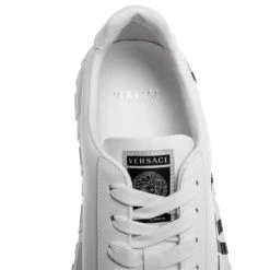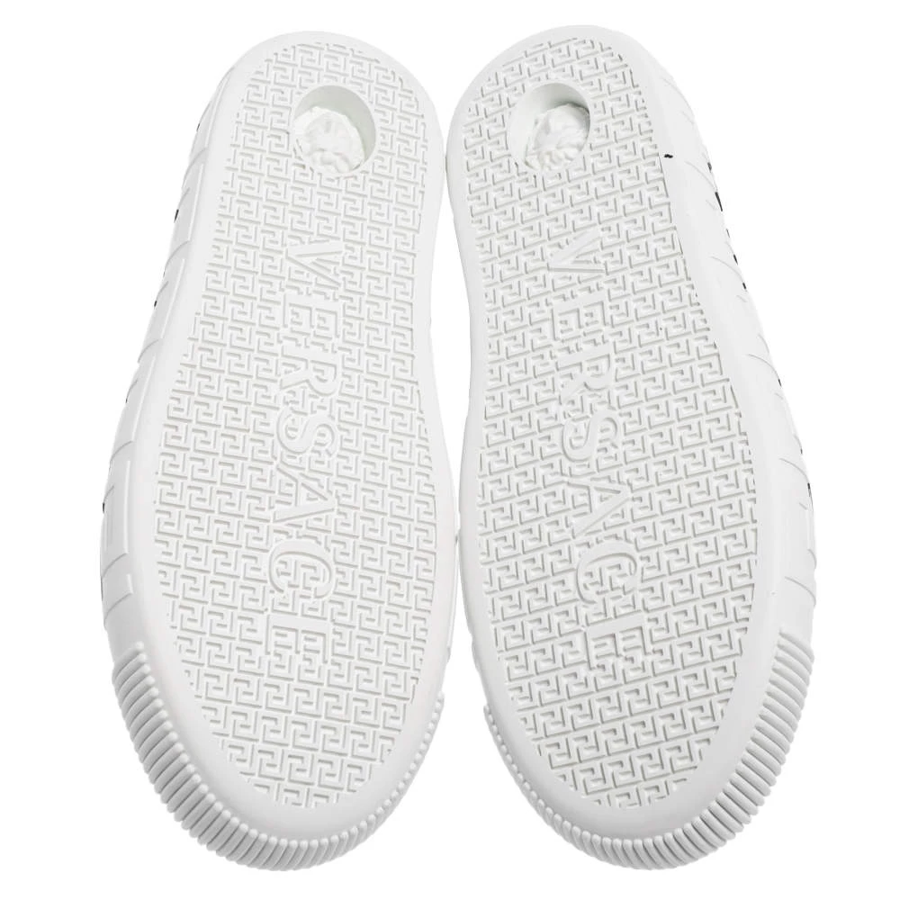 Coming in a classic low-top silhouette, these Versace sneakers are a seamless combination of luxury, comfort, and style. They are made from leather in a white shade. These sneakers are designed with logo details, laced-up vamps, and comfortable insoles.