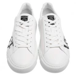 Coming in a classic low-top silhouette, these Versace sneakers are a seamless combination of luxury, comfort, and style. They are made from leather in a white shade. These sneakers are designed with logo details, laced-up vamps, and comfortable insoles.
