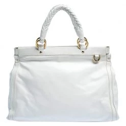 Look classy and sophisticated in this Versace tote. Get yourself this stylish leather bag for a modern look. It is lined with satin to store your essentials which adds to its functionality. The bag flaunts dual handles and the brand logo embossed on the front.