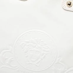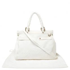 This Versace leather satchel has an alluring design. Beautifully crafted, the bag comes with a highly durable exterior detailed with the Medusa motif on the front, a spacious fabric interior, two woven handles, and a shoulder strap. The creation is ideal for daily use.