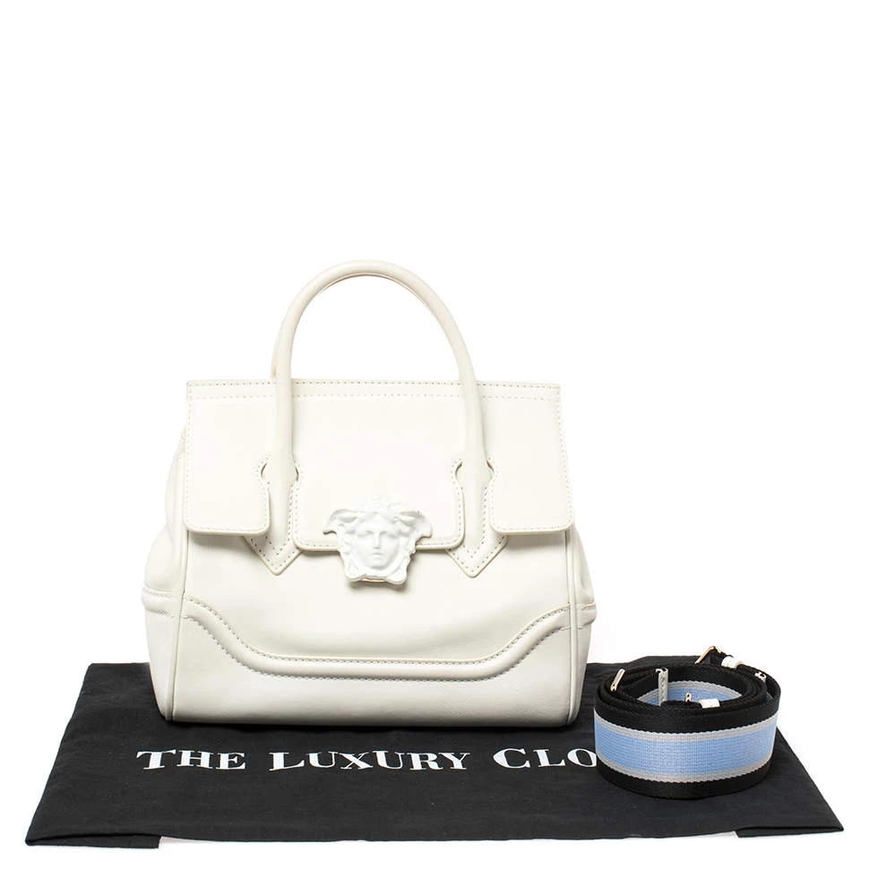 This Palazzo Empire tote from Versace is just amazing! Exhibiting a chic persona, it comes crafted from white leather and features a front flap that carries the iconic Medusa motif. It opens to a canvas and leather interior that can graciously accommodate your basic essentials. Equipped with dual top handles and a detachable shoulder strap, it is sure to be an investment-worthy buy!