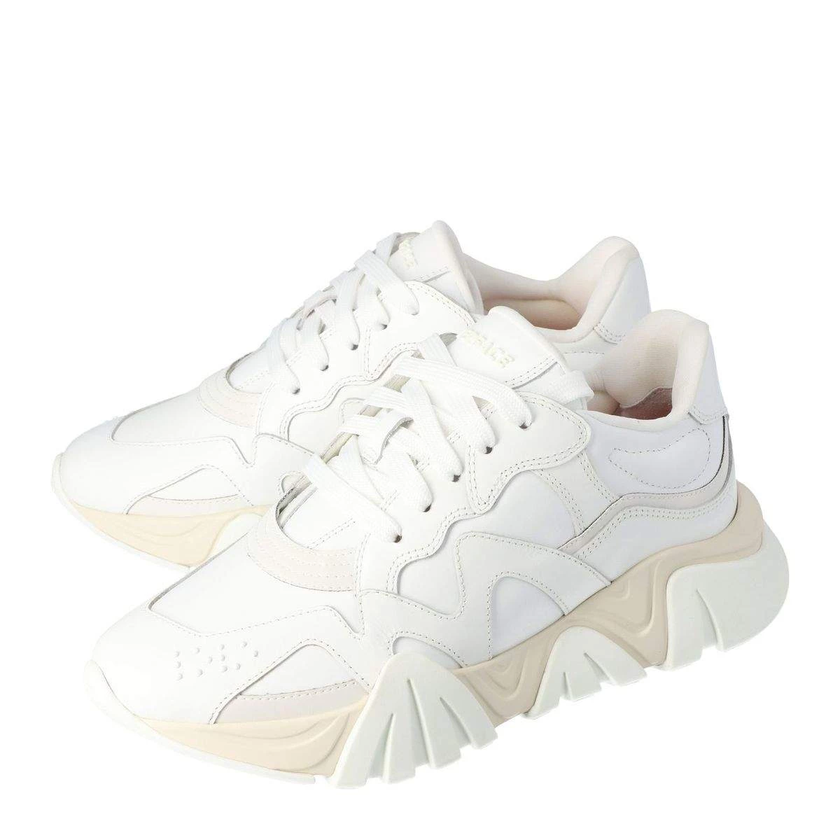 Add quirky fun to your wardrobe with this pair of sneakers from the house of Versace. Mirroring the latest trends of the season, these swanky leather shoes are perfect for setting a style trend on your casual outings. Featuring paneled designs on the surface, the squalo platform sneakers come with lace tie-ups that add a modish twist to the look. The white shade and makes sure these shoes can be effortlessly paired with all your ensembles for a jazzed up appearance.