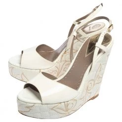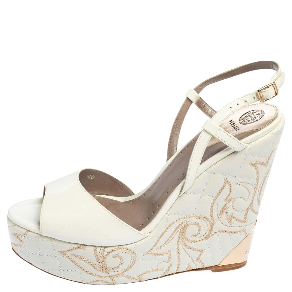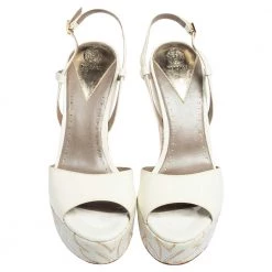 Get the most comfortable walk with these Versace wedge sandals. They come in patent leather and feature open toes, buckle slingback straps, and quilted wedge heels.