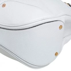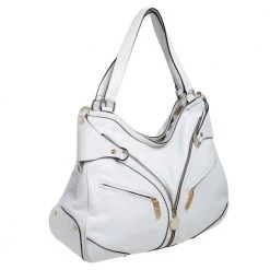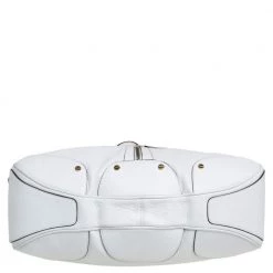 This white leather biker bag by Versace is just what you need to create an edgy and chic look. Made from white leather, it is detailed with gold-tone buckles and multiple zippers and pockets that enhance the feel of the bag. The interior is lined with satin and features a zip pocket.