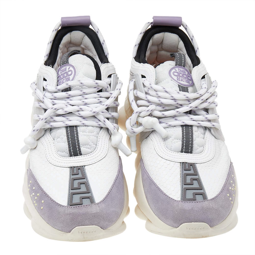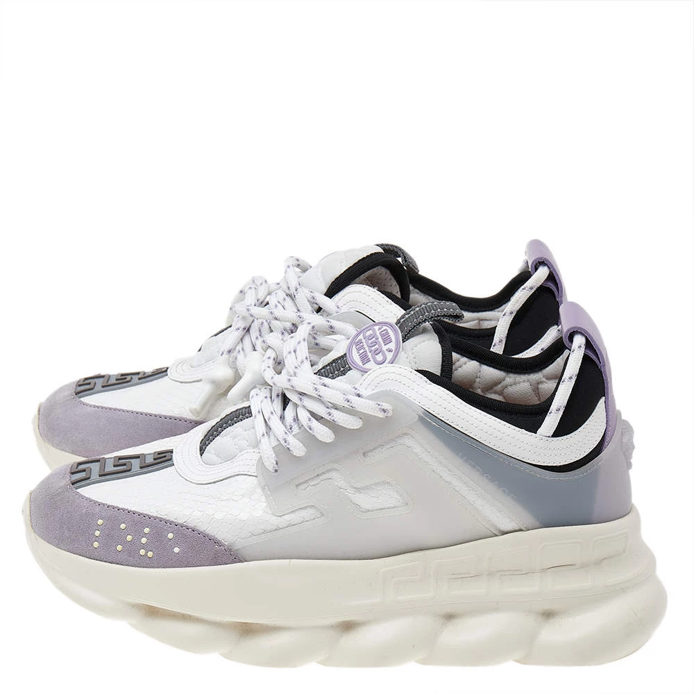 Versace’s Chain Reaction sneakers are for fashionable people like you and a stylish take on the chunky sneaker trend. These ones are crafted from high-grade materials in white. They feature laces, signature detailing, high platforms, and outsoles featuring a chain-like design.