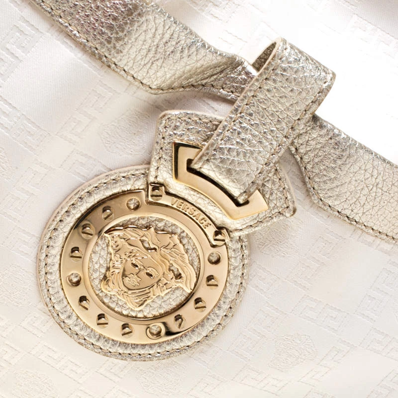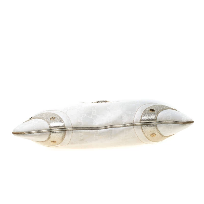 This beautifully stitched signature fabric and leather hobo is by Versace. With a fabulous fabric-lined interior, it will house more than your essentials. Boasting of a seamless finish, this hobo offers style and utmost practicality.