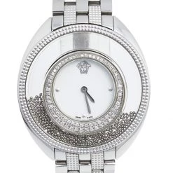 This beautiful timepiece from the house of Versace is sure to be a conversation starter with its eclectic and eye-catching design. Constructed in stainless steel, this Destiny Spirit 86Q watch features a transparent panel on the case which is filled with steel studs floating as you move. It has a minimal white dial that comes with silver-tone hands, stud markers, and the signature Medusa logo.