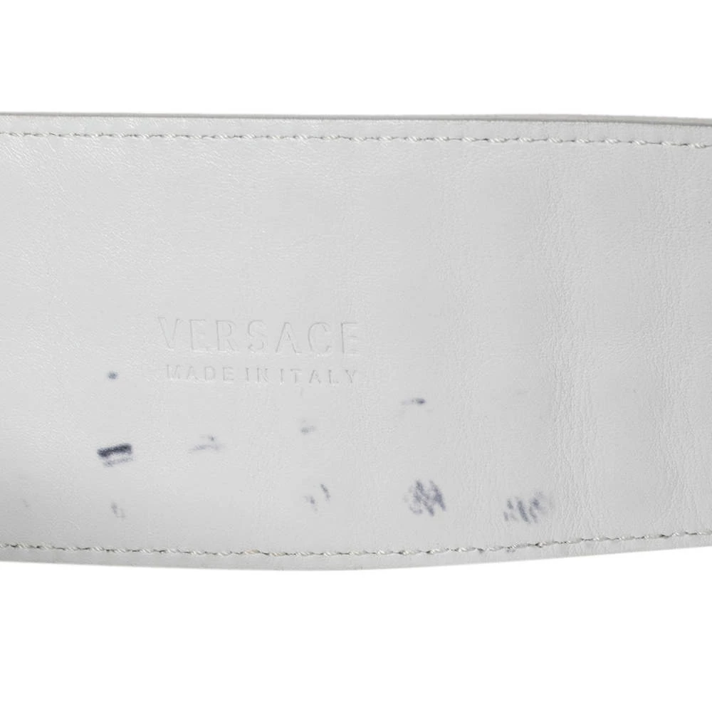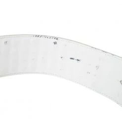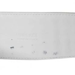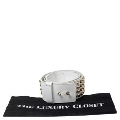 Accessorise right with this lovely waist belt from Versace. It is beautifully made from leather and detailed with gold-tone metal studs. The white belt can be worn to cinch skirts and dresses.