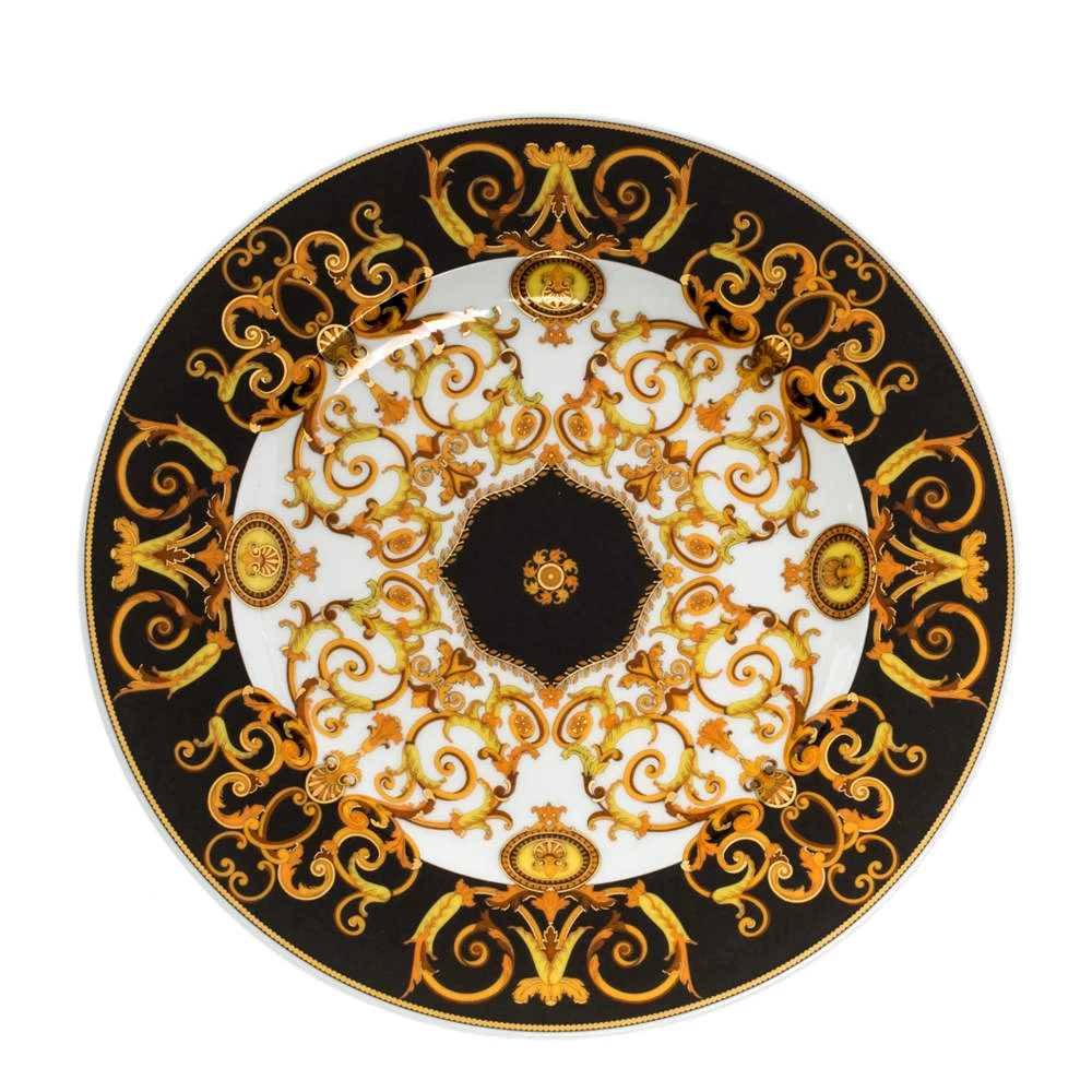 Finely crafted by skilled hands using porcelain, this plate from Versace X Rosenthal is to add an exquisite touch to your tabletop. The design on it is a luxurious spread of gold patterns on black and white.