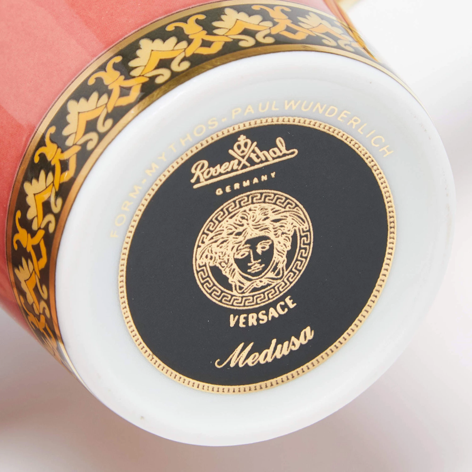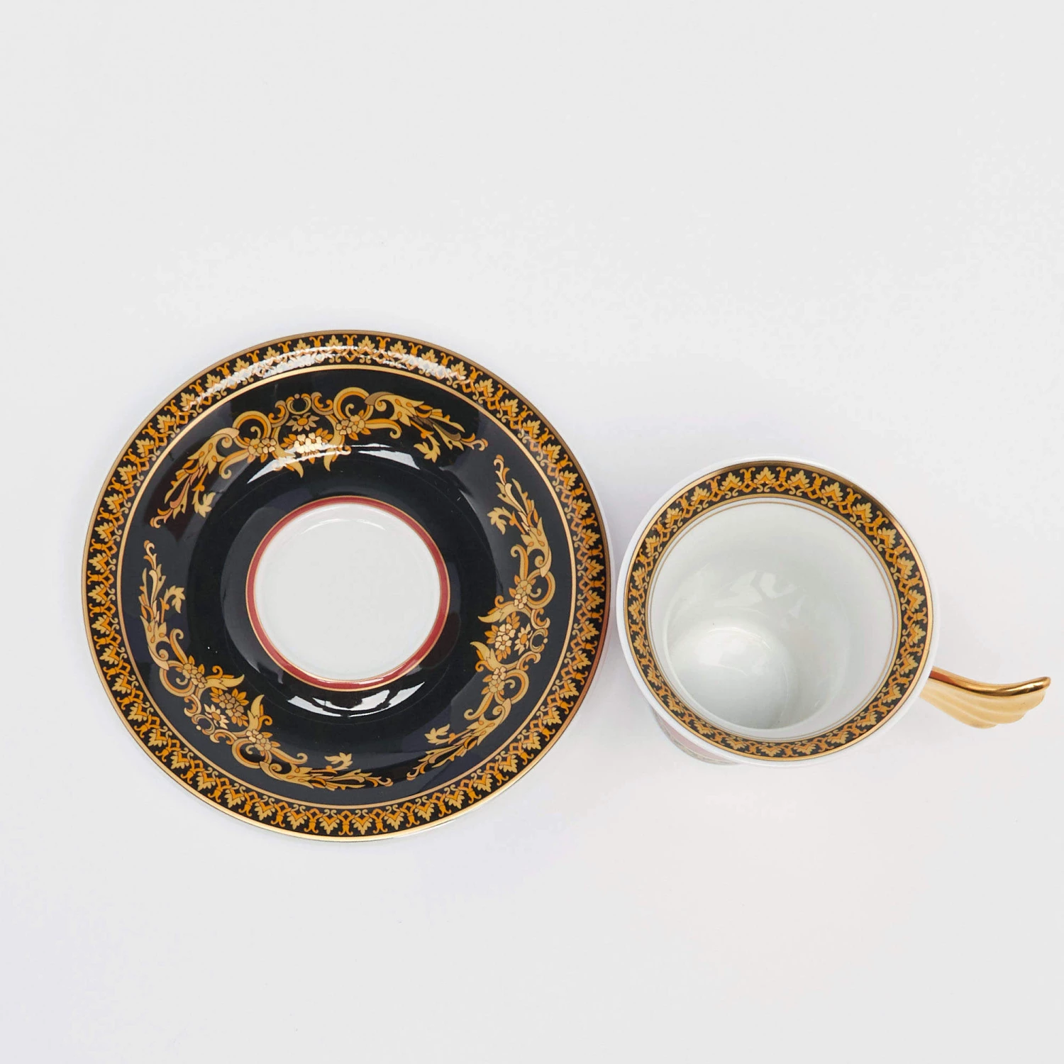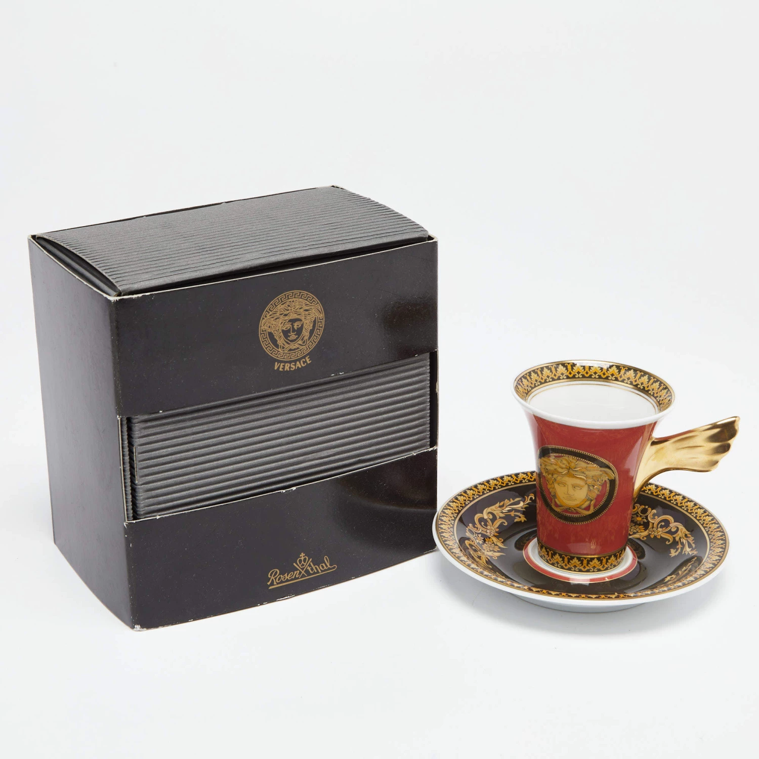 Enter Versace’s magical world with the Medusa collection. Made in collaboration with Rosenthal, this set of espresso cup is made of porcelain and adorned with exquisite symbols of Medusa and other signature motifs.