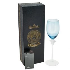 This Versace x Rosenthal wine glass has an alluring look. It has a blue-tone bow and a slim, long stem that has the Medusa motif for an unmissable brand mark. It is also a fine gifting option.