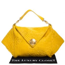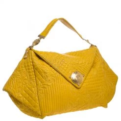 This shoulder handbag by Versace has a rich and classy look that can be easily paired with any of your favourite outfits. Crafted in Italy, it is made of Barocco leather and comes in a stunning shade of yellow. It features lovely quilted detailing on the exterior that adds a touch of femininity. It comes with a front flap with a gold-tone closure carrying the Medusa logo, it opens to a satin interior and is held by a single top handle.