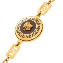 From Versace comes this gorgeous belt created from yellow gold-tone metal. The chain-link belt comes with the iconic Medusa medallion at the centre. Be it with your dresses or suits, the belts will add a luxe touch of style.
