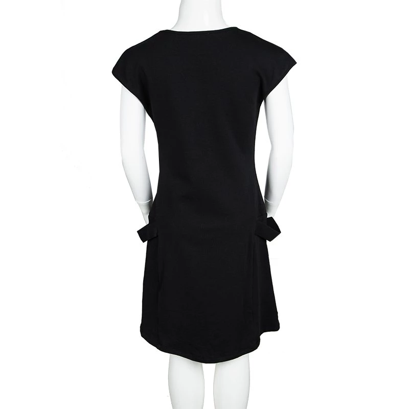 This black dress by Young Versace will be perfect for your little girl’s wardrobe. It has been made from cotton and styled with short sleeves and the famous Medusa logo embellished on the front. Button details on the sides make the dress complete.