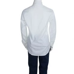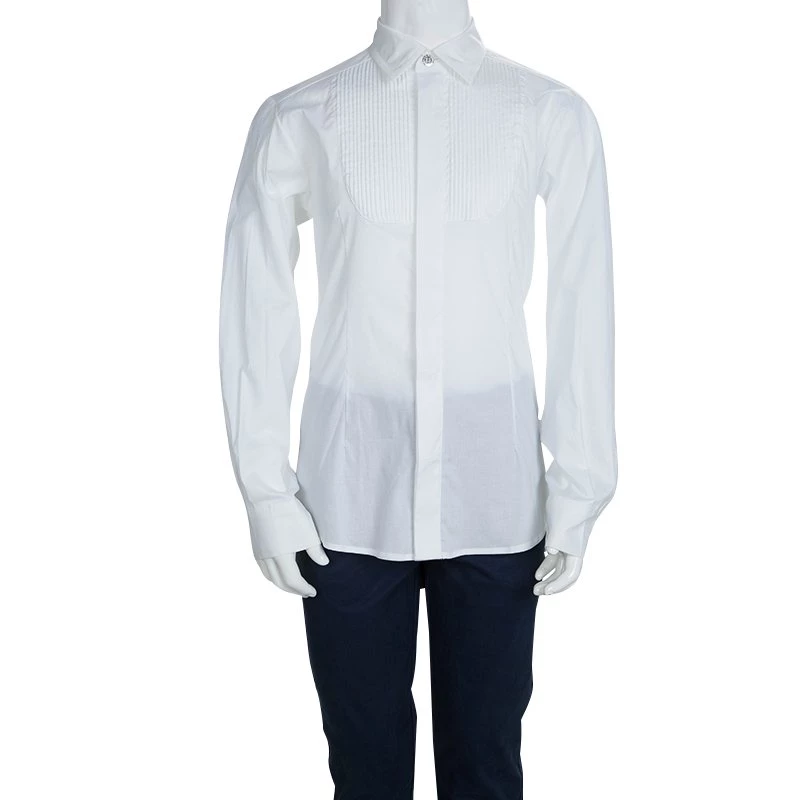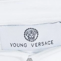 Young Versace presents this crisp white shirt that features pintucked yoke detail and concealed buttoned front. Decorated with the iconic logo button on the collar and cuffs, this shirt has darted back to provide the perfect fit. One can never go wrong with a white shirt and blue jeans!